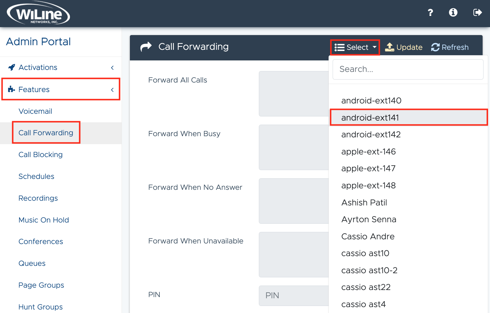 Follow the steps below to enable call forwarding for users: