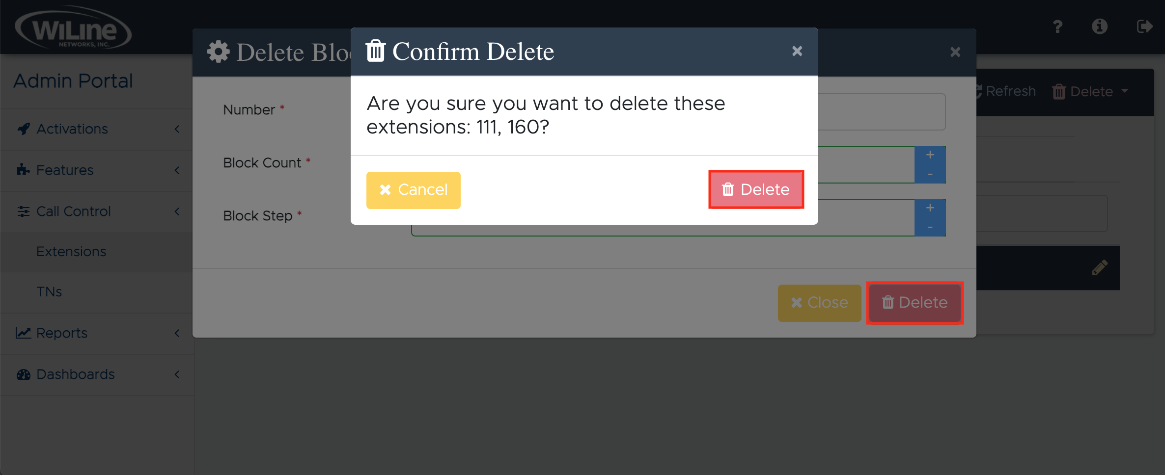Aparecerá una ventana emergente de confirmación en la que se le pedirá que elimine las extensiones correspondientes: