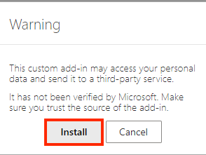 Nota: Aparecerá una advertencia estándar indicando que el complemento personalizado puede acceder a información personal.